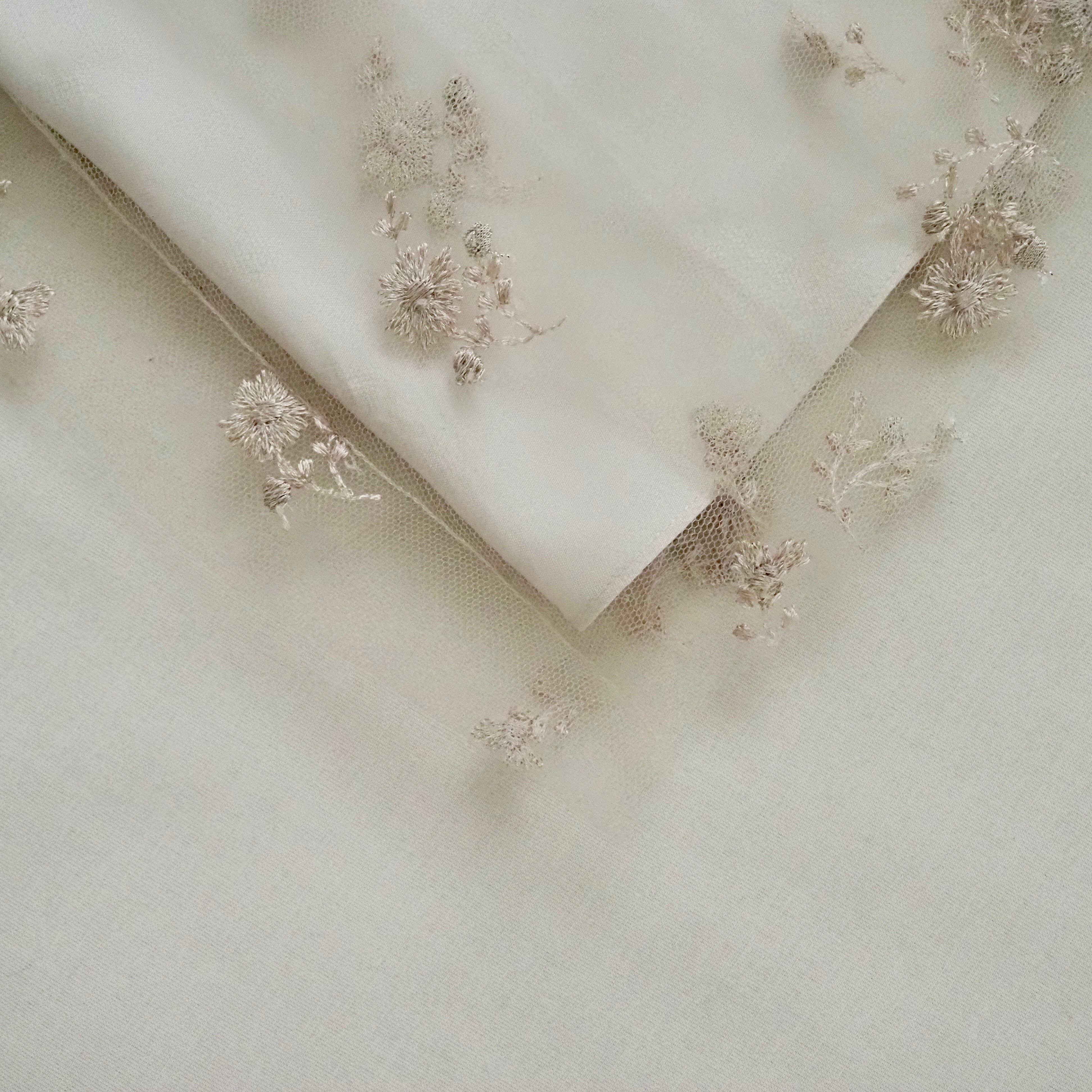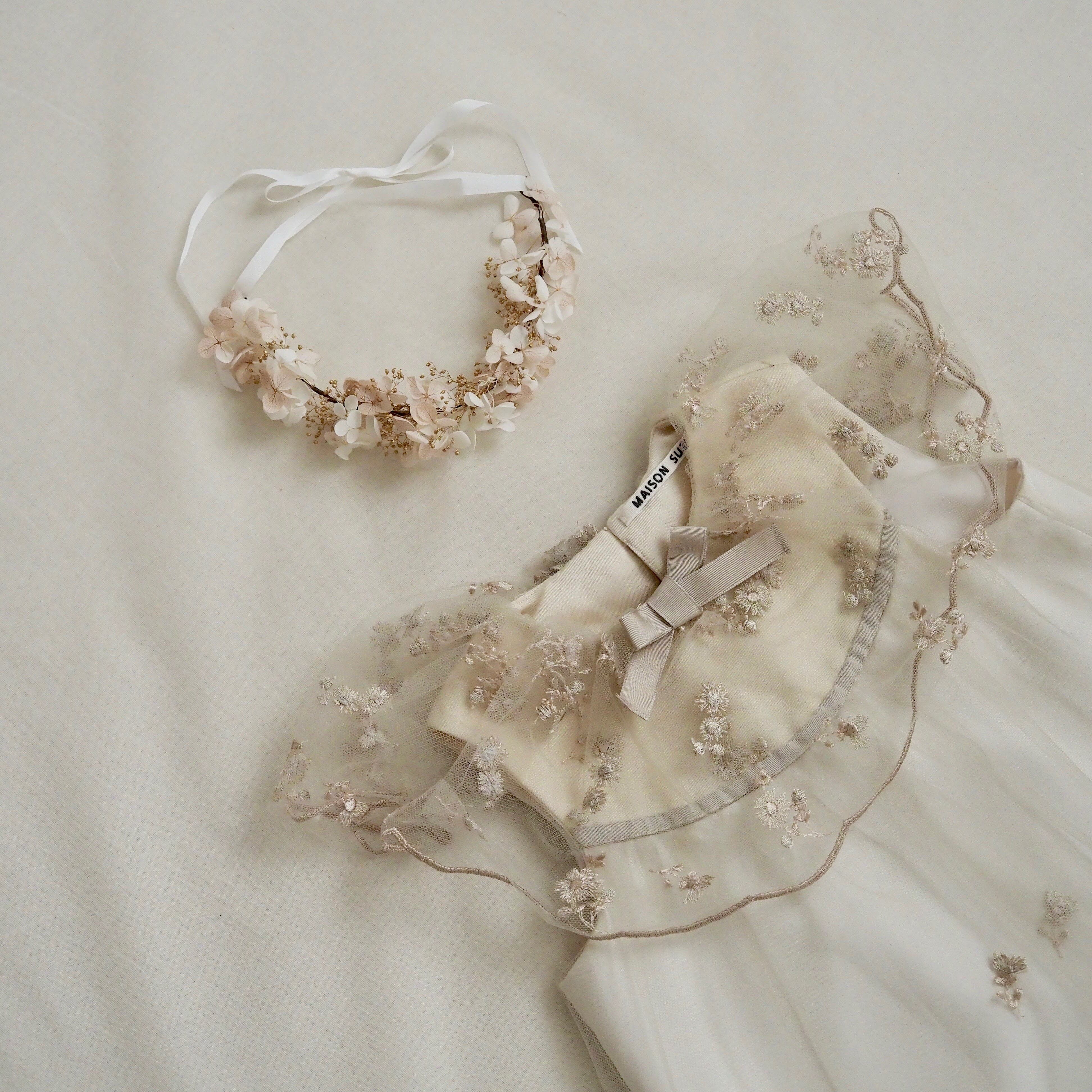 Flower刺繍 Tulle Kids dress & head accessory(Beige)110